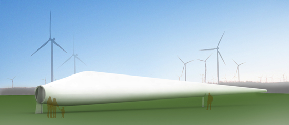 LOOKOUT » BLUE CANYON WIND FARM » TWIN GROVES WIND FARM VISITORS CENTER » TURBINE BLADE DISPLAY SALES CENTER » MIRABEAU B
